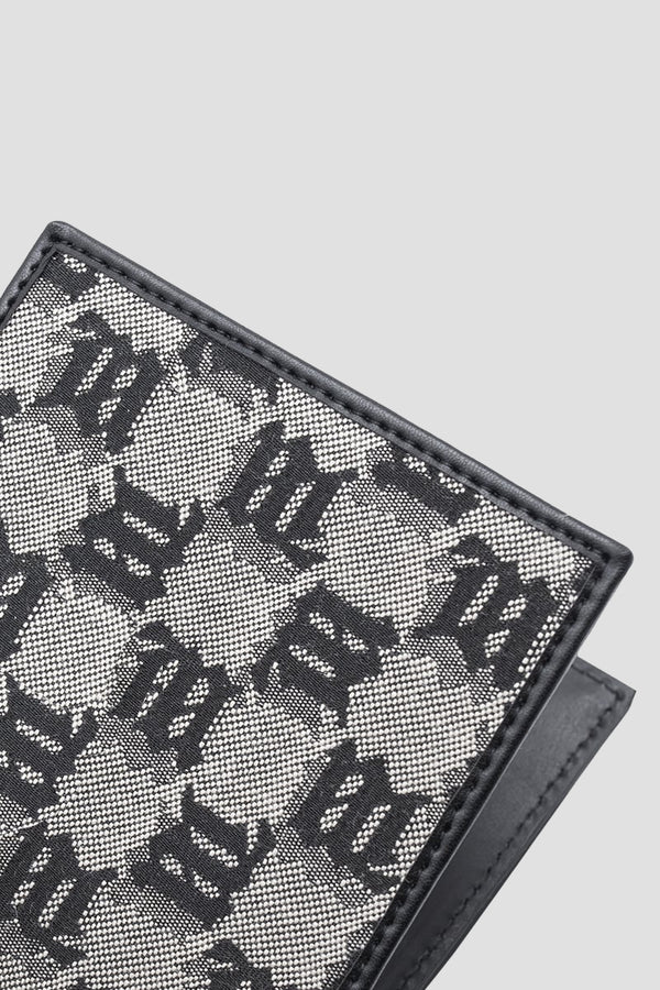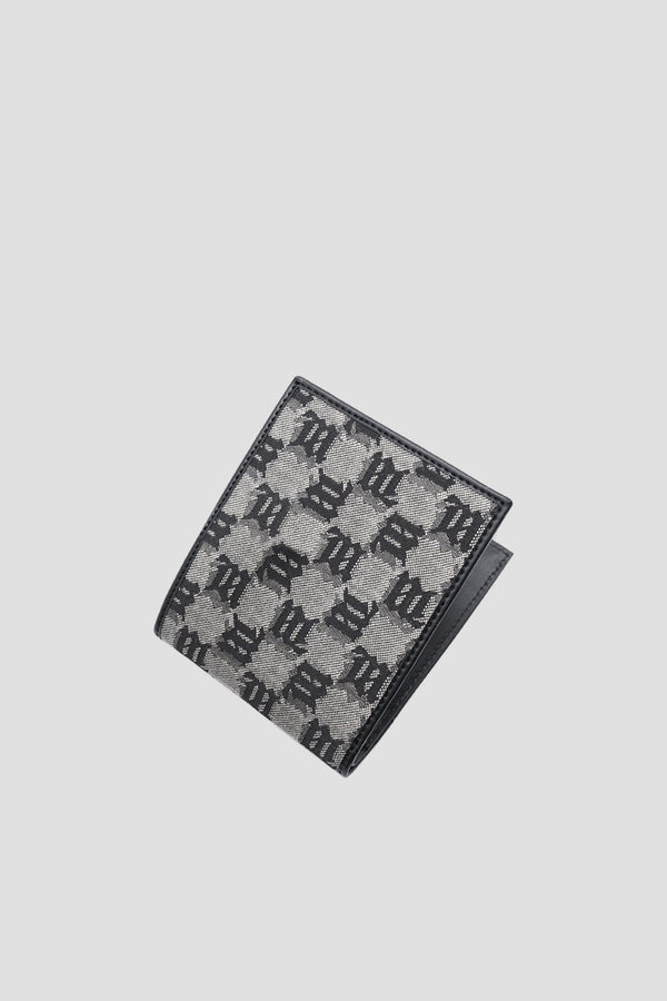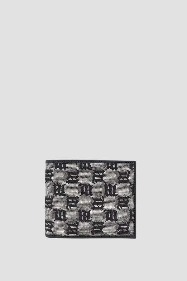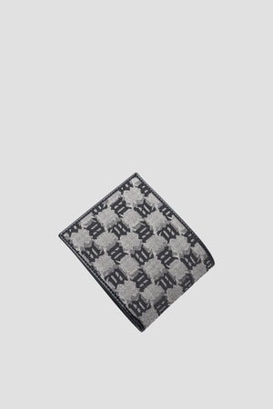Classic bifold wallet crafted in canvas with "M" monogram all over pattern and leather. 6 card slot and 1 compartment for bank notes. Embossed logo. Tonal stitches.