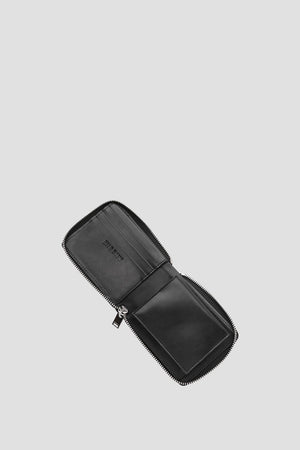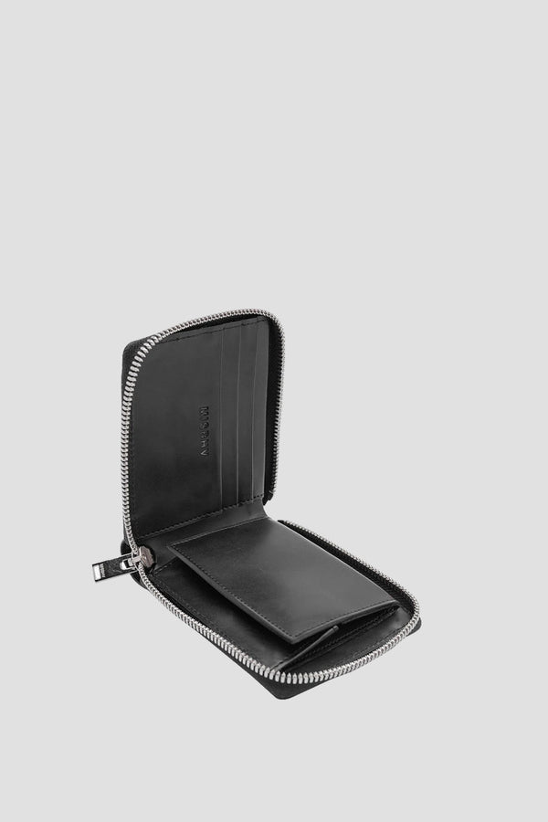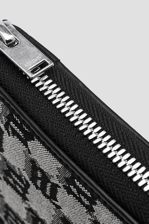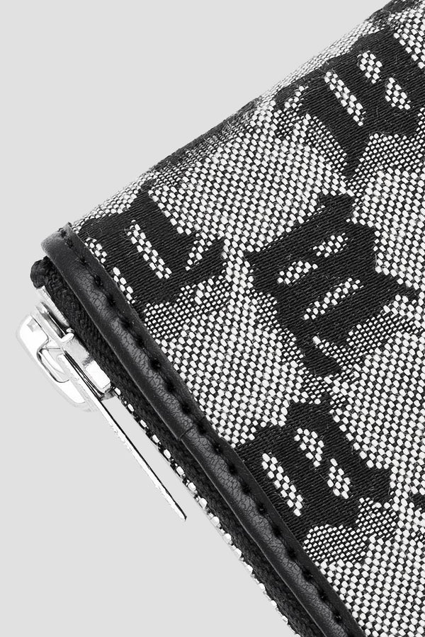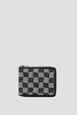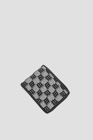 Medium zipped wallet crafted in canvas with "M" monogram pattern allover and leather. 3 card slots, 1 zipped coin pocket and 1 compartment for banknotes. Embossed logo inside. Tonal stitching.