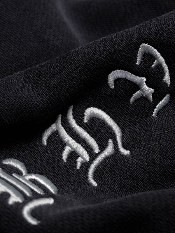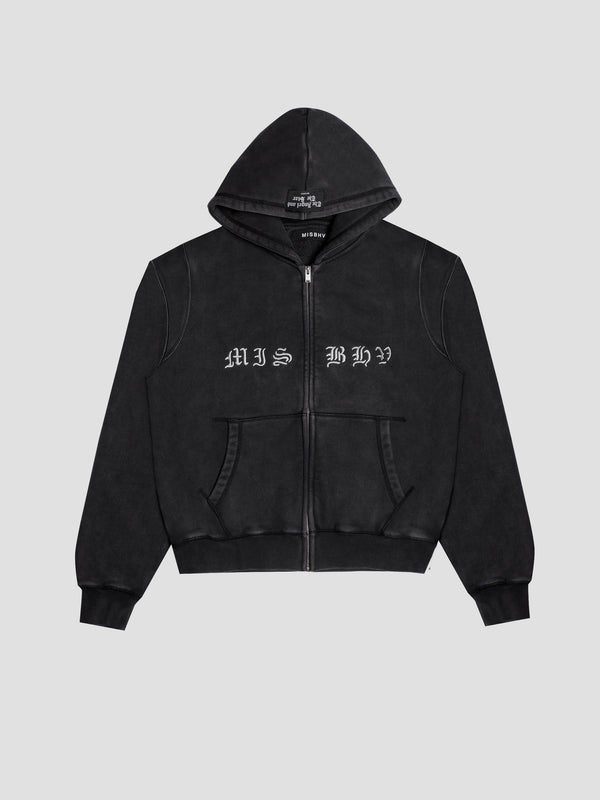 Heavyweight zipped french terry hoodie in black. Fading throughout.
