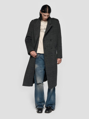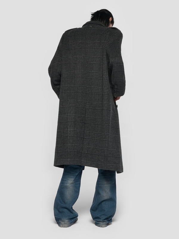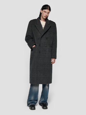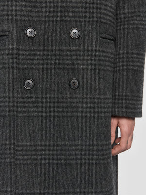 Double Breasted Check Wool Coat