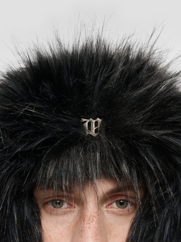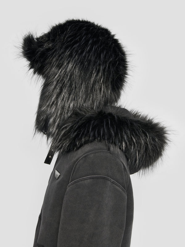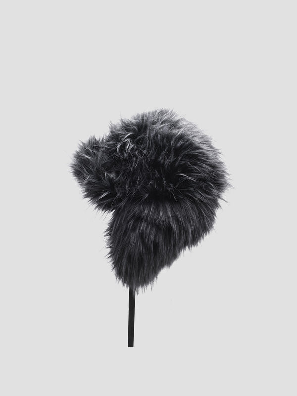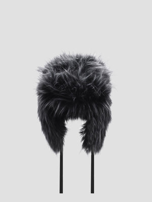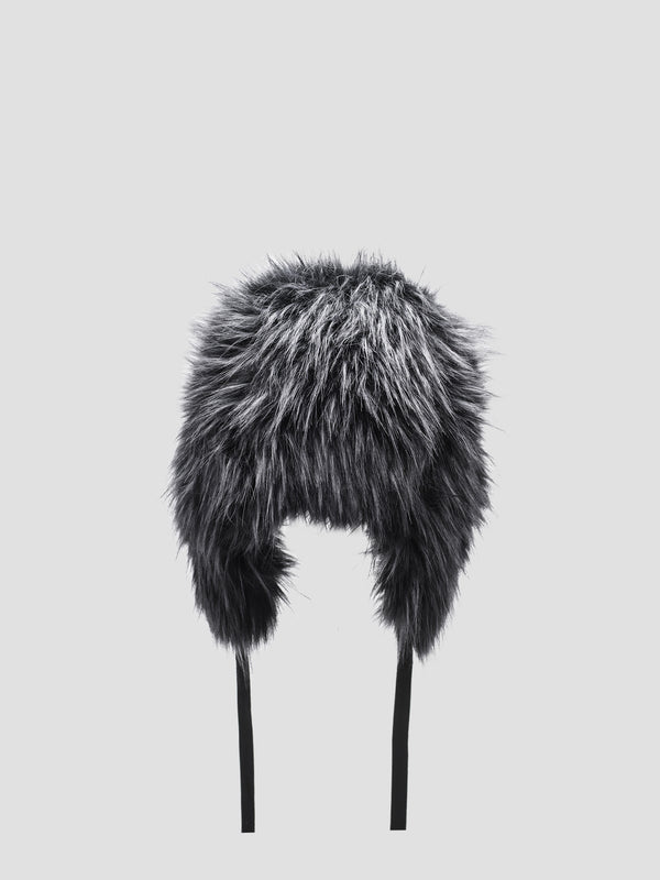 Faux fur hat with ear-flaps in grey. Fading throughout.