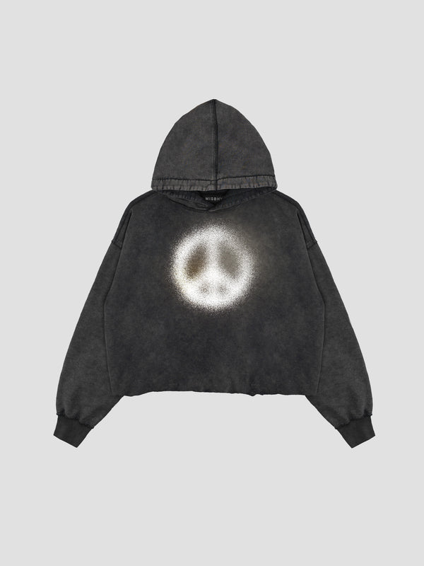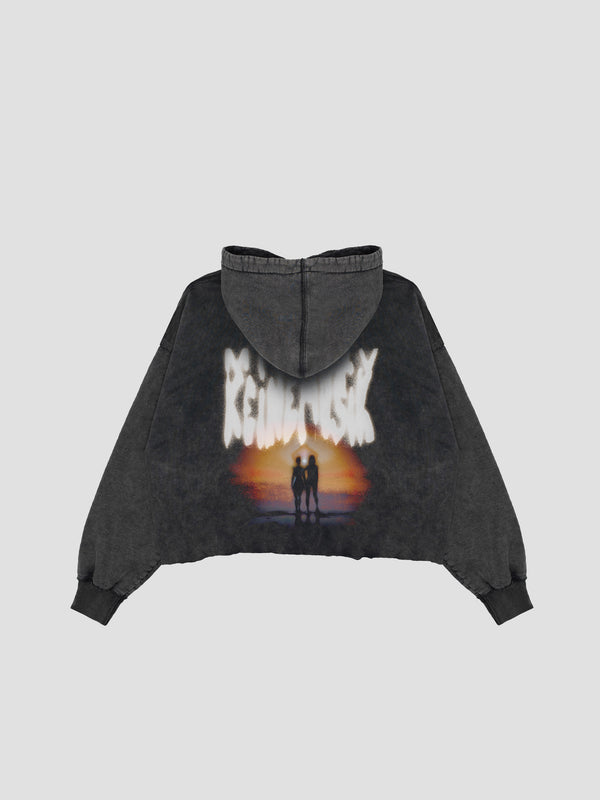 Heavyweight french terry hoodie in black. Fading throughout.
