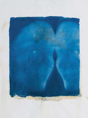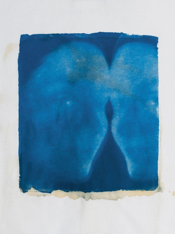 Each T-shirt features a handcrafted underpainting made with cyanotype emulsion, forming an irregular frame around the graphic. Due to the nature of the process, every composition differs in layout and tone, making each piece truly one-of-a-kind.The artwork was developed using the cyanotype technique, known for its deep, analog-photography-inspired blue. The patterns were then transferred onto jersey through screen printing, preserving their organic texture and subtle imperfections — a quiet mark of the handmade process.Each piece is finished with a dedicated MISBHV label featuring Julia Kowalska’s handwritten jacquard-woven signature and individually hand-numbered by the artist as part of a limited 50-piece edition.