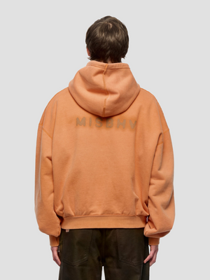 Heavyweight french terry hoodie in orange. Fading throughout.