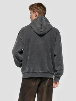 Heavyweight french terry hoodie in grey. Heavy fading throughout.