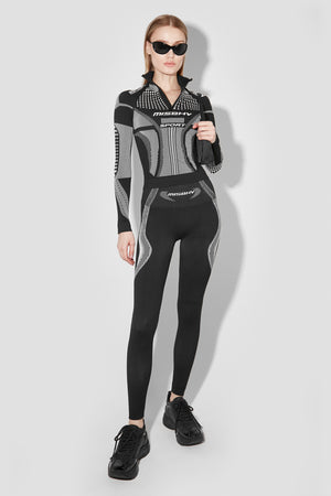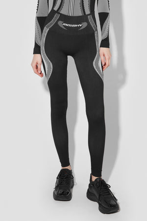 Iconic style across MISBHV SPORT. Black & white leggings crafted in fitted, breathable, sustainable engineered knitwear. Logo on the front. Due to the specificity of the yarn used, the product may show heterogeneous dyeing color- melange.