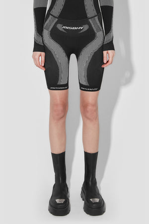 Iconic style across MISBHV SPORT. Black biker shorts crafted in fitted, breathable, sustainable engineered knitwear. Logo on the front. Tonal stitching. Due to the specificity of the yarn used, the product may show heterogeneous dyeing color- melange.