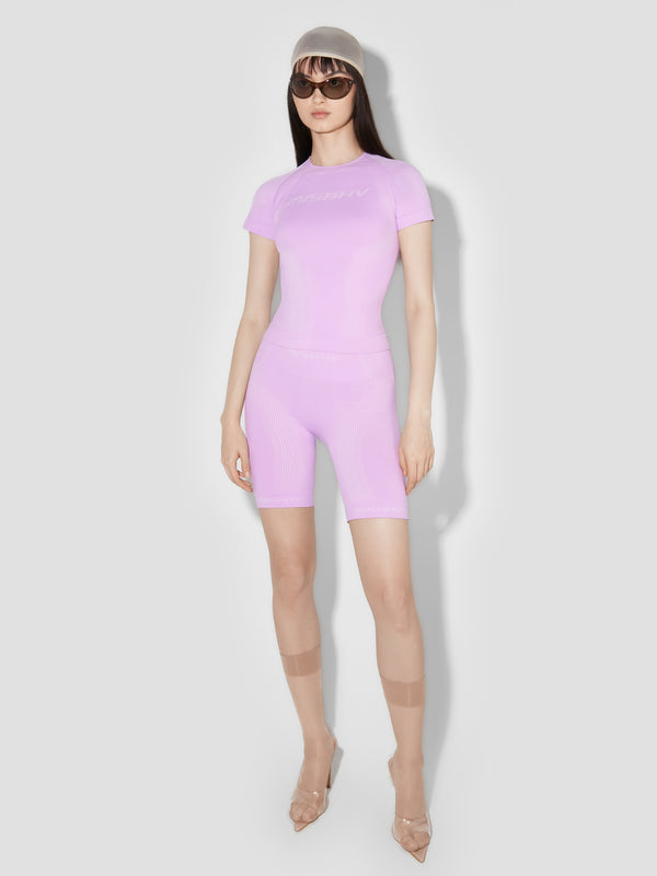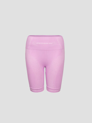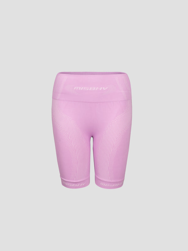 Breathable stretch recycled jersey shorts in lilac. Jacquard stripes and check pattern throughout.