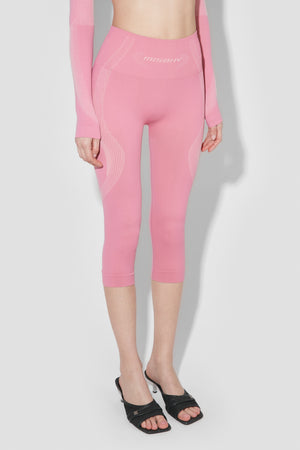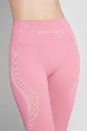 Pink breathable stretch recycled jersey leggings. Jacquard stripes and check pattern throughout.
