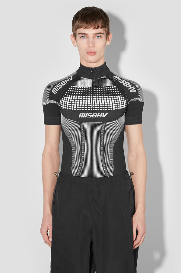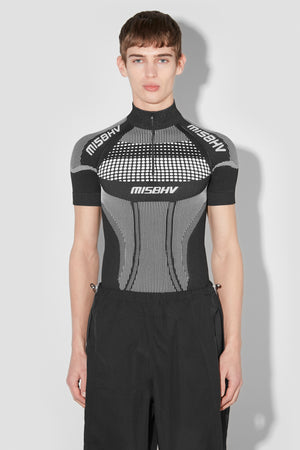 Iconic style across MISBHV SPORT. Half front zip fastening T-shirt top crafted in fitted, breathable, sustainable engineered knitwear. Logo on the front. Due to the specificity of the yarn used, the product may show heterogeneous dyeing color- melange.