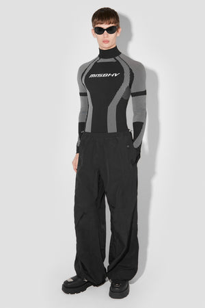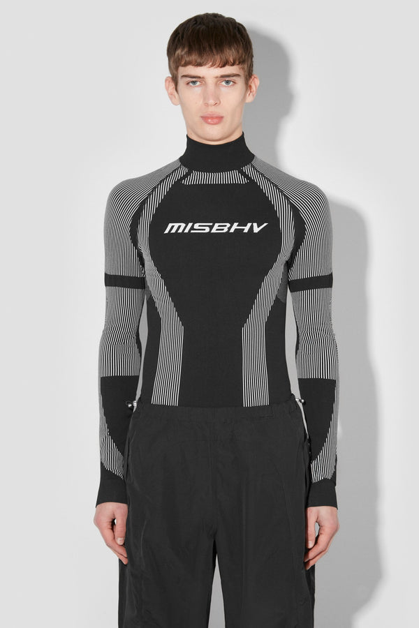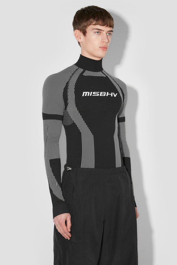 Iconic style across MISBHV SPORT. Black & white longsleeve top crafted in fitted, breathable, sustainable engineered activewear. Due to the specificity of the yarn used, the product may show heterogeneous dyeing color- melange.